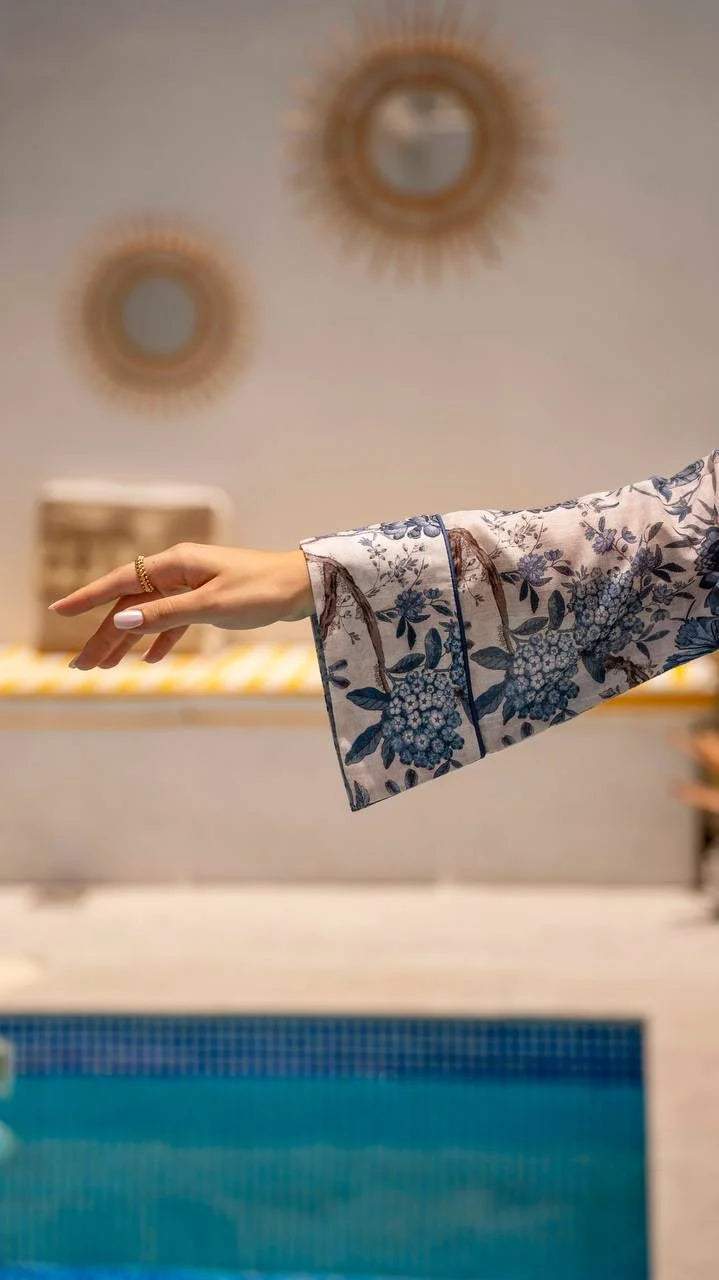 Graceful and serene, “Blue Meadow” features a soft floral and bird motif in calming shades of blue. Light and airy, it’s made for slow mornings, garden strolls, and timeless summer elegance.