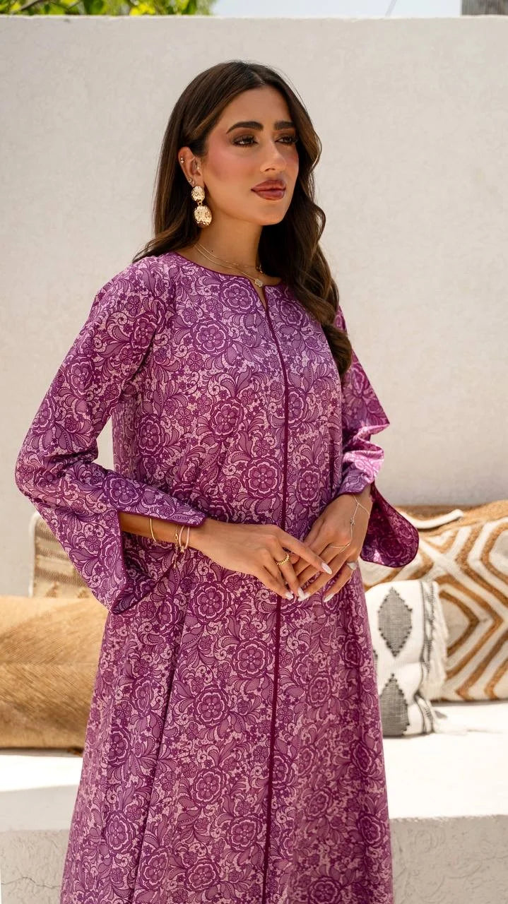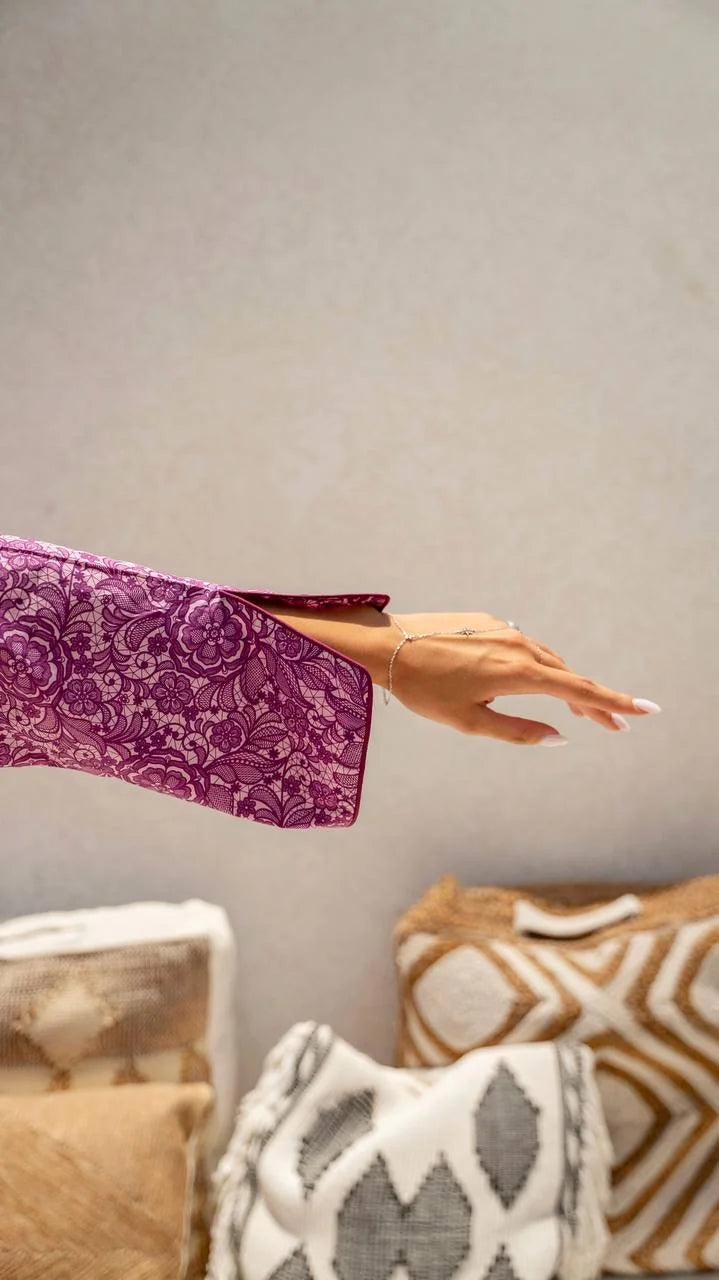 A rich floral design in shades of plum and rose, “Orchid Bloom” features intricate detailing and a graceful structure. A timeless piece made for elegant, confident moments.