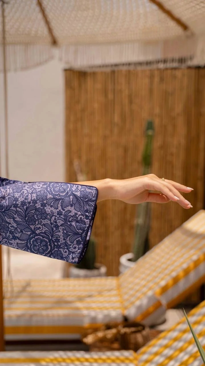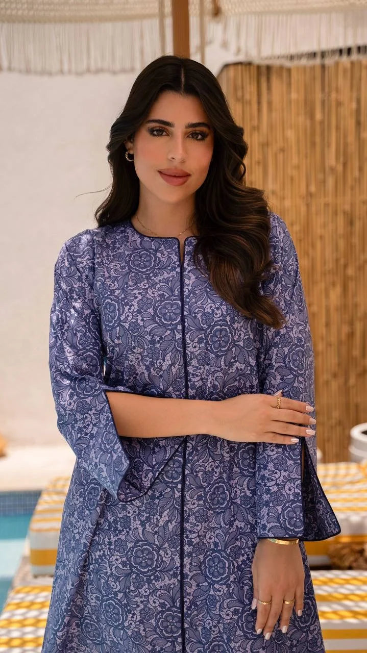 Elegant and serene, “purple Rose” features delicate floral patterns in soft purple hues. Its graceful silhouette and timeless design make it a go-to piece for refined, effortless style.